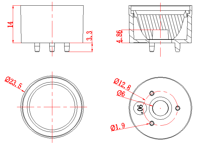2. 特别针对小功率红外5050 LED而设计,对LED所发出的光利用率可以达到90%以上(3MM透光率为93%);3. 配合红外监控镜头4MM、6MM、8MM几种规格而专业设计,做到红外光斑与监控屏幕可视范围有效统一,无暗角,